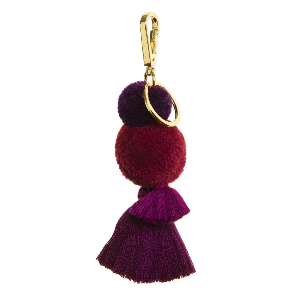 Pom Pom Galore, Burgundy & Dark Red Pom Pom, Tassel Keyring, Bag Charm